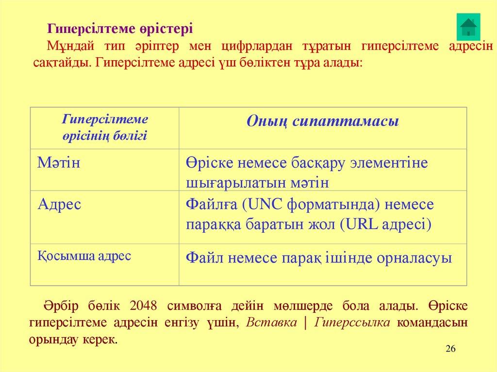 сақтайды. Гиперсілтеме адресі үш бөліктен тұра алады: