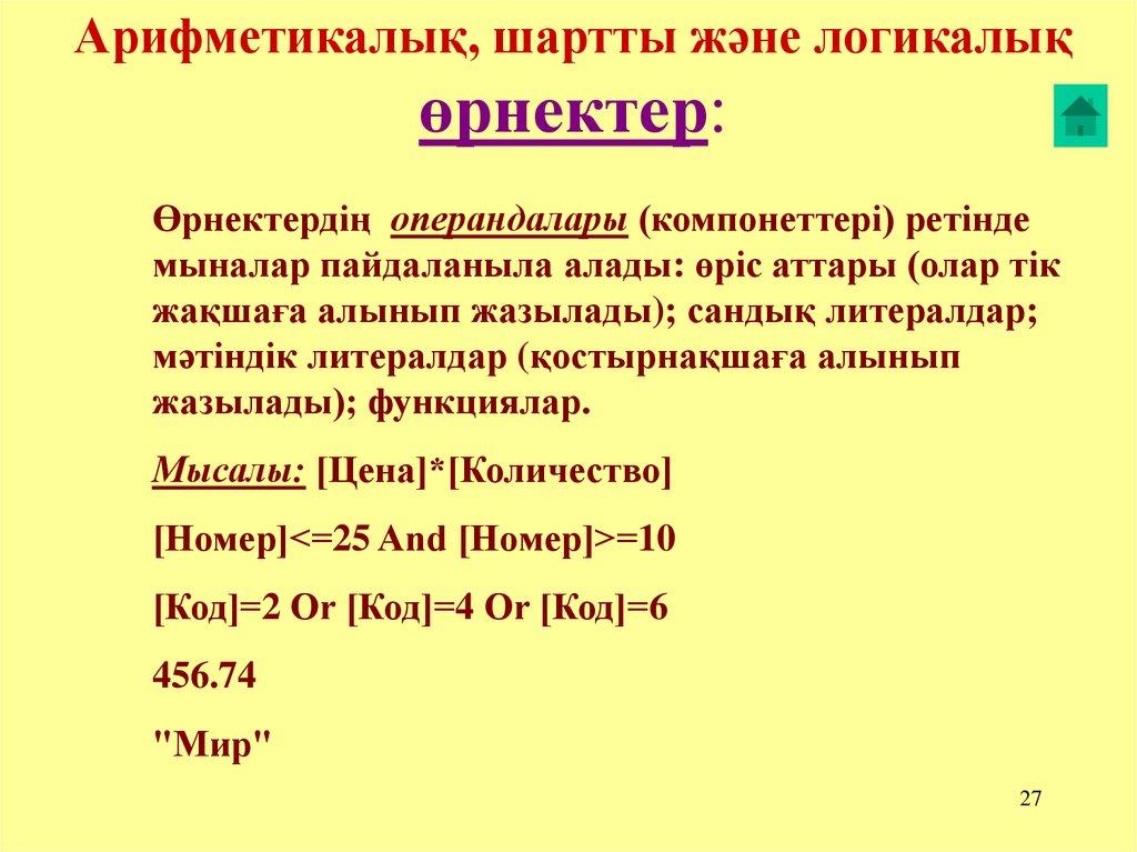 Арифметикалық, шартты және логикалықөрнектер: