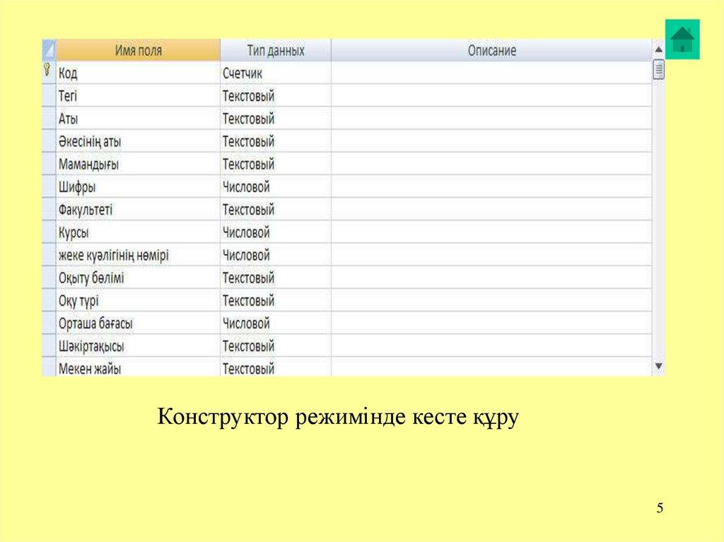 Конструктор режимінде кесте құру5