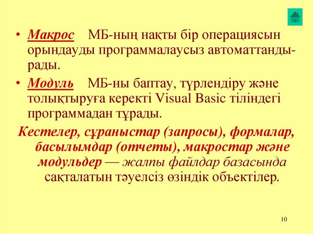 9. MS Access объектілері :