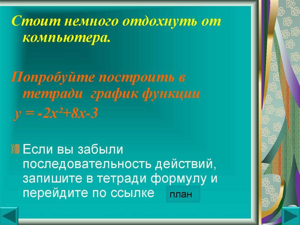 Графиком квадратичной функцииявляется парабола, ветви которой
