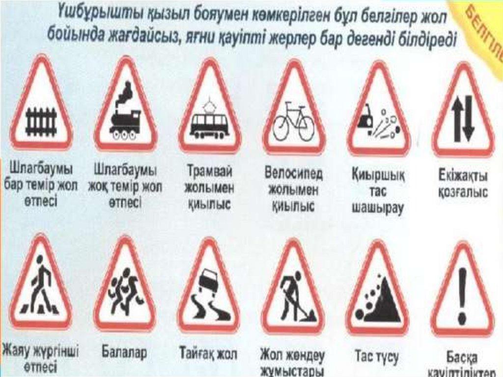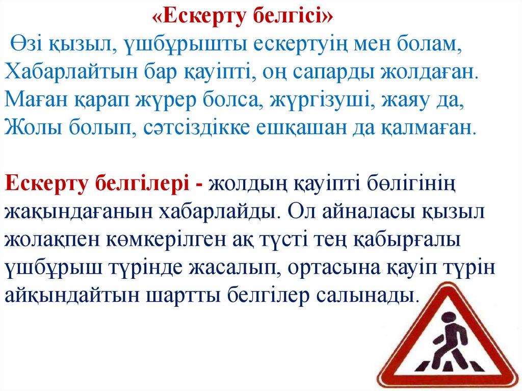 «Ескерту белгісі»Өзі қызыл, үшбұрышты ескертуің мен болам,