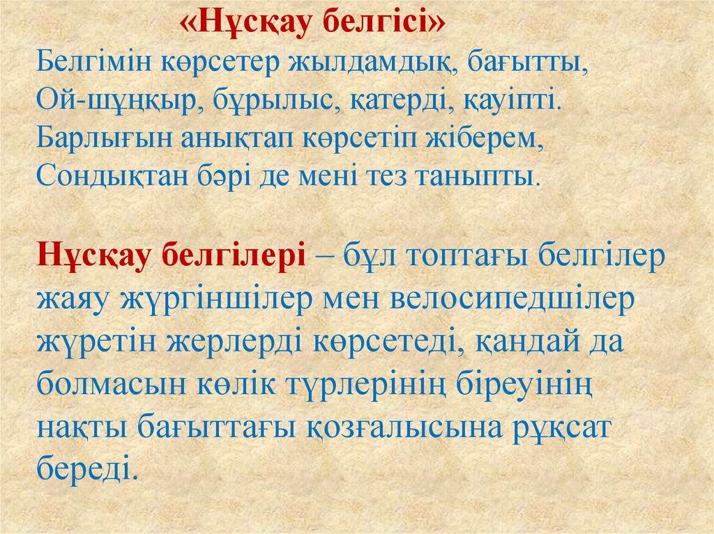 «Нұсқау белгісі»Белгімін көрсетер жылдамдық, бағытты,