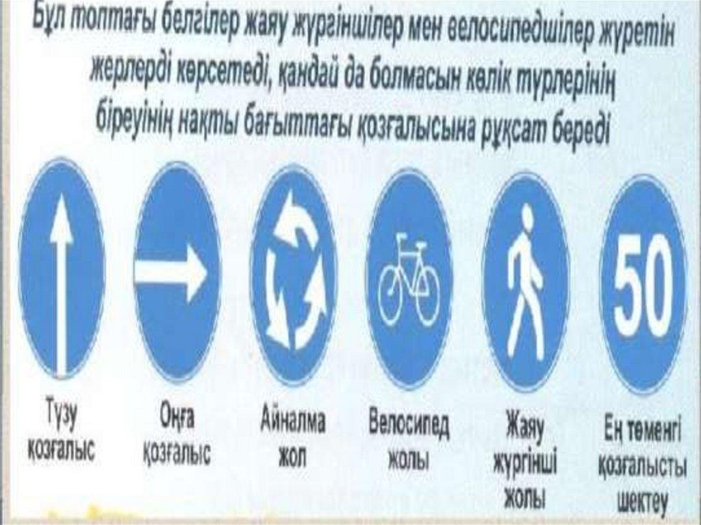 Бұл топтағы белгілер жол қозғалысына қатынасуларға,