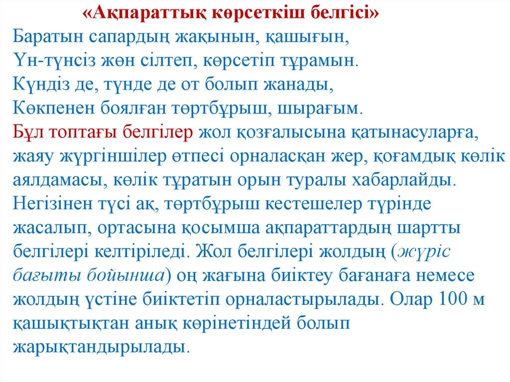 «Ақпараттық көрсеткіш белгісі»Баратын сапардың жақынын, қашығын,