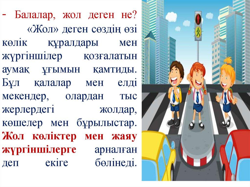 - Балалар, жол деген не?«Жол» деген сөздің өзі
