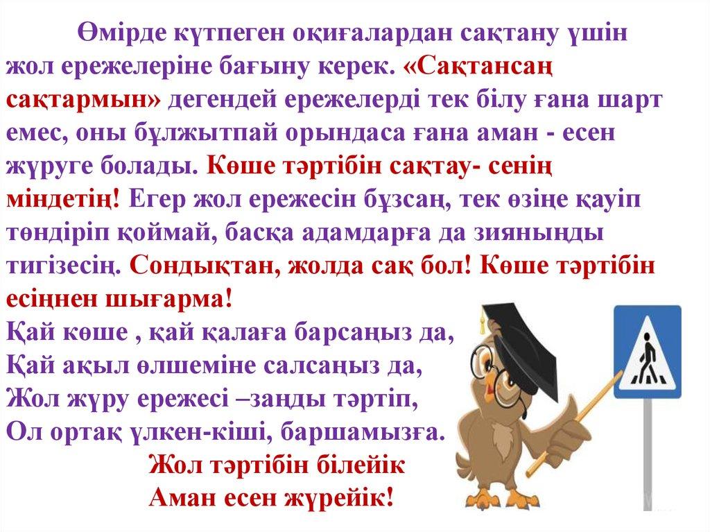 тигізесің. Сондықтан, жолда сақ бол! Көше тәртібін