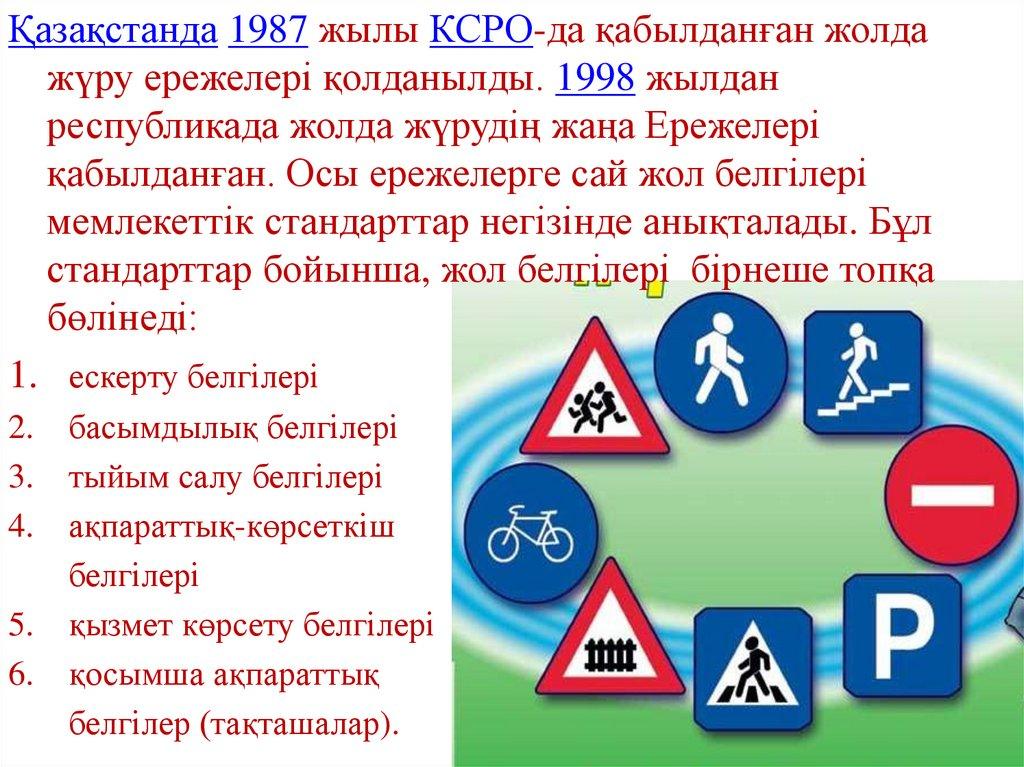 Қазақстанда 1987 жылы КСРО-да қабылданған жолдажүру ережелері қолданылды. 1998 жылдан