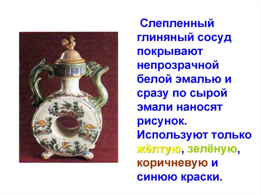 Издавна край был богат залежами гончарныхглин. В жарком пламени печи обжигалась,