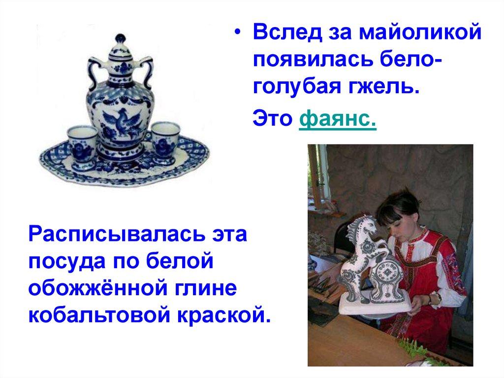 • Вслед за майоликойпоявилась белоголубая гжель.