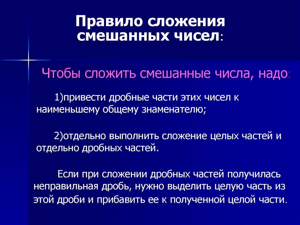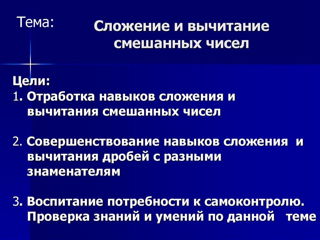 Сложение и вычитание смешанных чисел (урок математики в 6 классе)