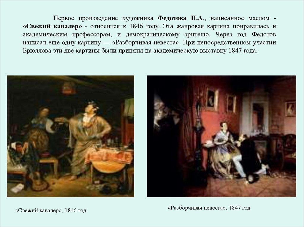 полно реалистические открытия первой половины 19 века отразились в 1840е годы в творчестве П.А. Федотова.