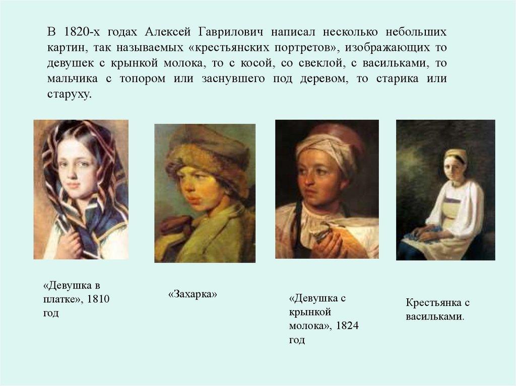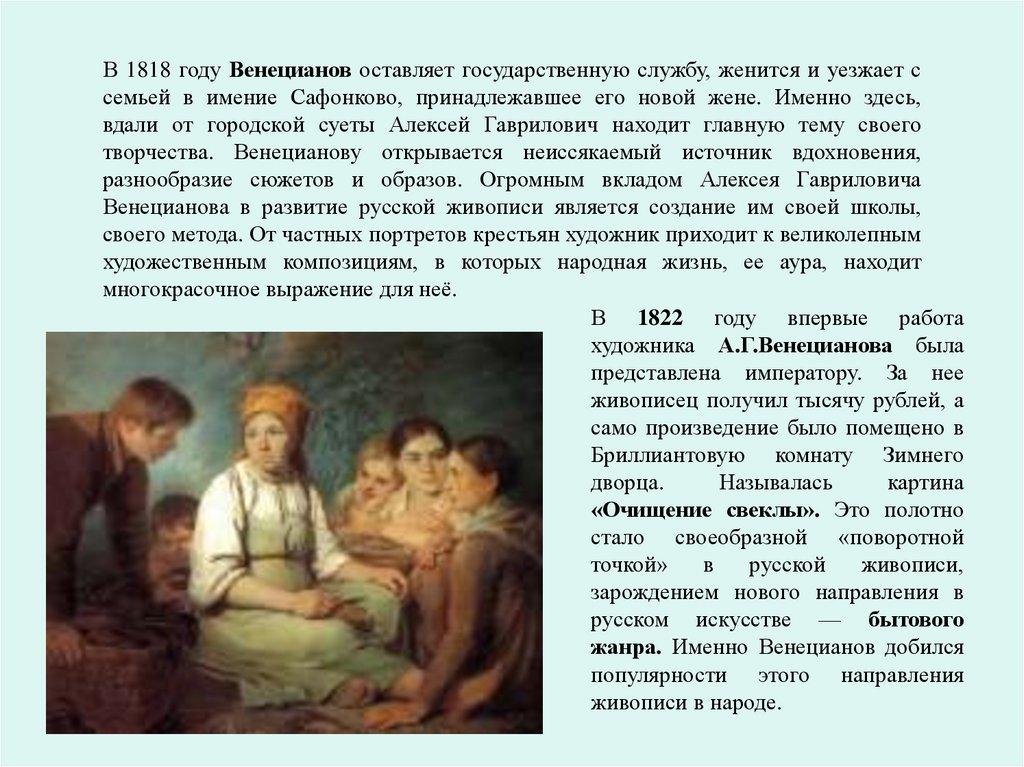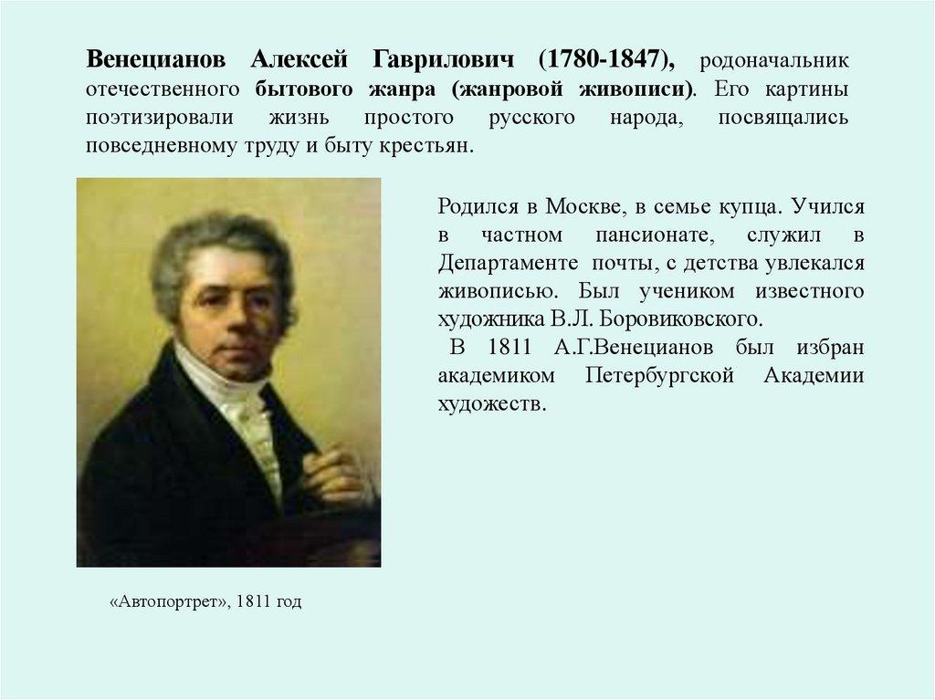 всего необходимо отметить имя художника А.Г. Венецианова. Наиболее же
