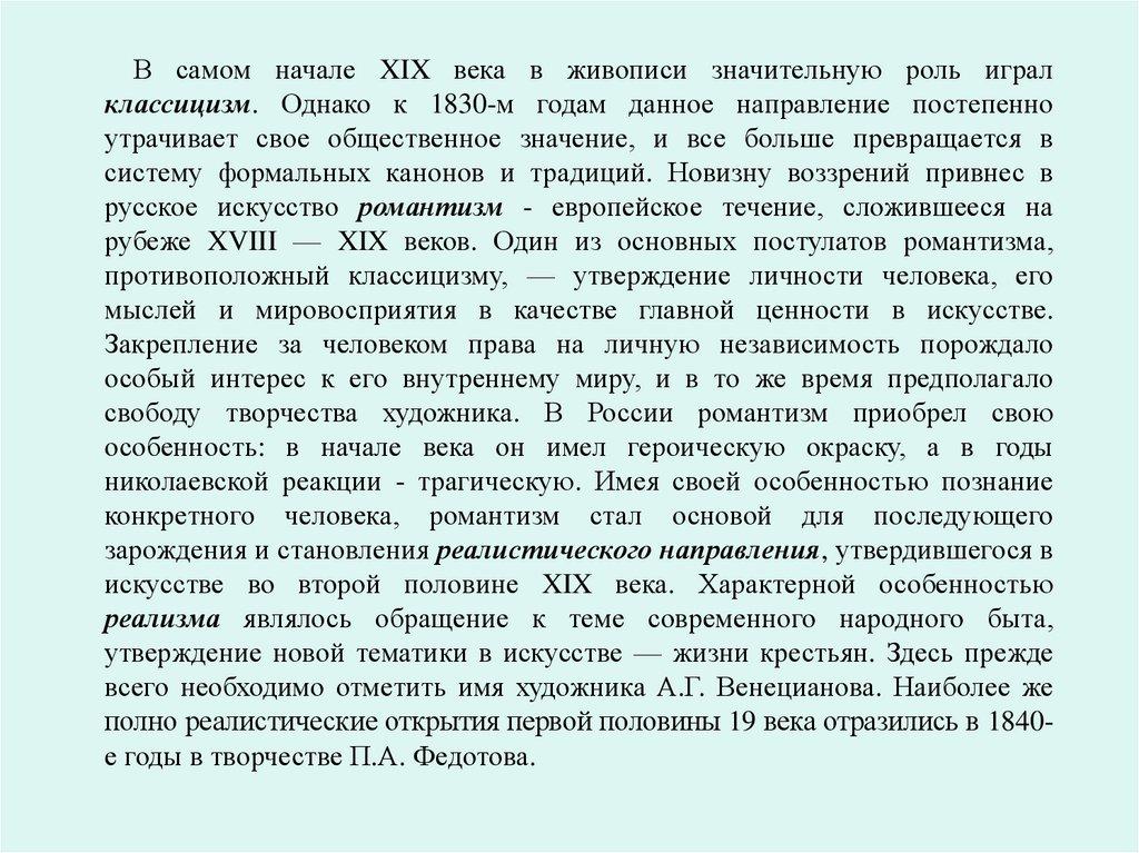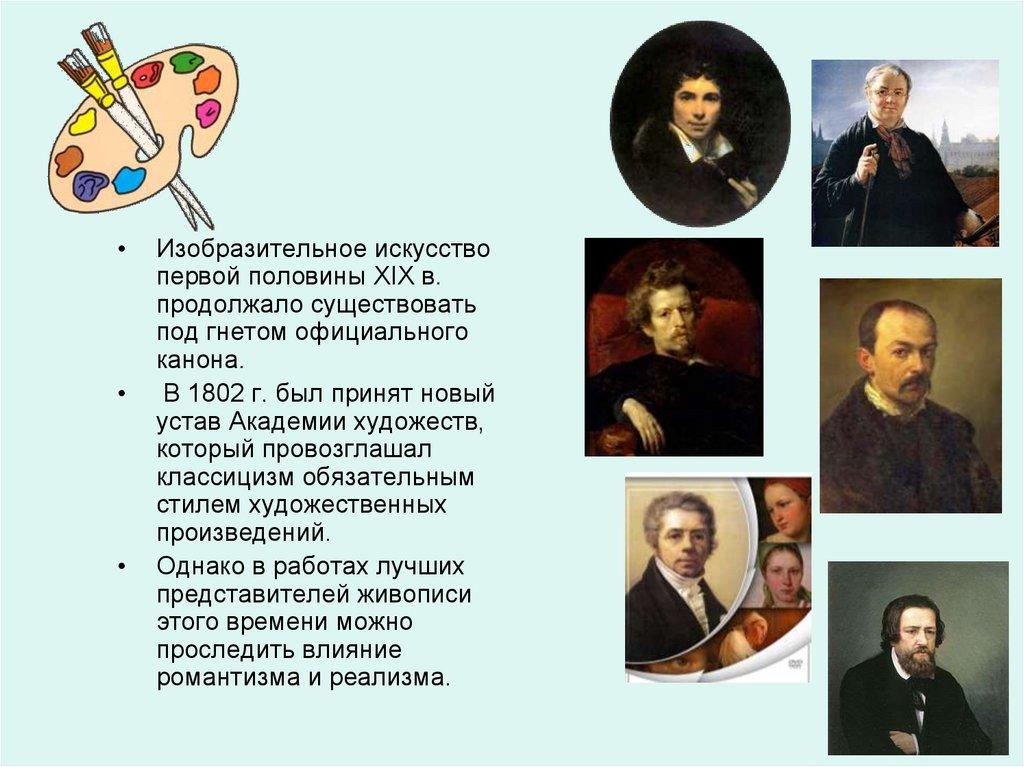 В самом начале XIX века в живописи значительную роль игралклассицизм. Однако к 1830-м годам данное направление постепенно