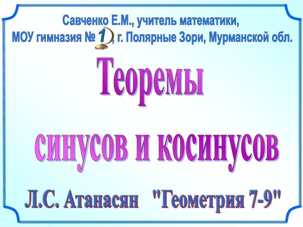 Теоремы синусов и косинусов
