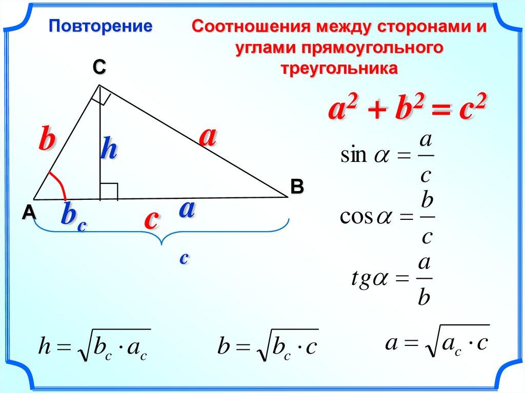 ПовторениеСоотношения между сторонами и