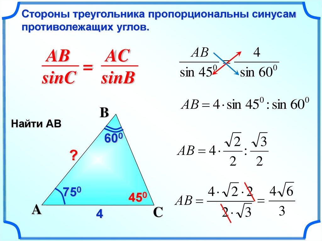 АВ 4 sin 45 : sin 60