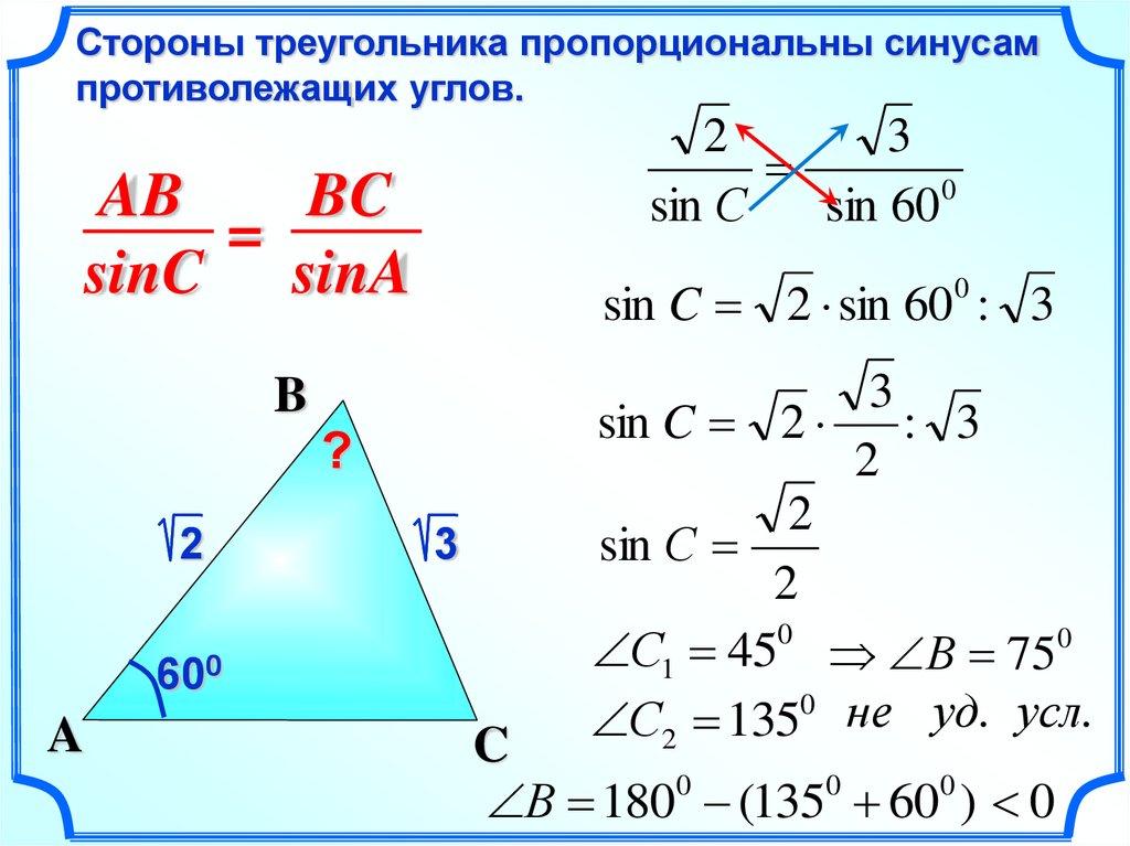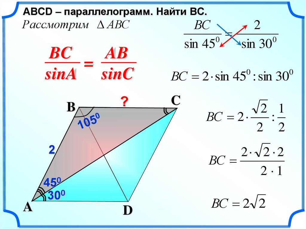 ВС 2 sin 45 : sin 30