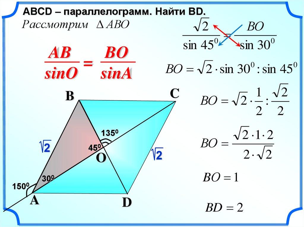 ВО 2 sin 300 : sin 450