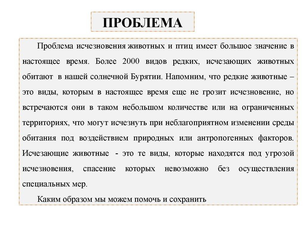 ПРОБЛЕМАПроблема исчезновения животных и птиц имеет большое значение в