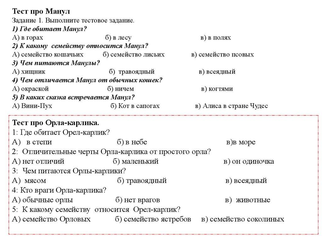 1) Каким вы видите дикого кота Манула? Ответ обоснуйте.