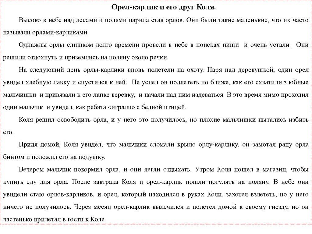 Орел-карлик и его друг Коля.Высоко в небе над лесами и полями парила стая орлов. Они были такие маленькие, что их часто