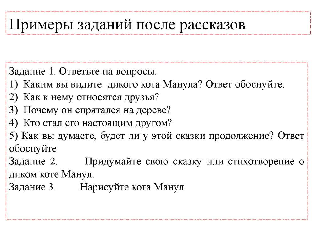 Примеры заданий после рассказовЗадание 1. Ответьте на вопросы.