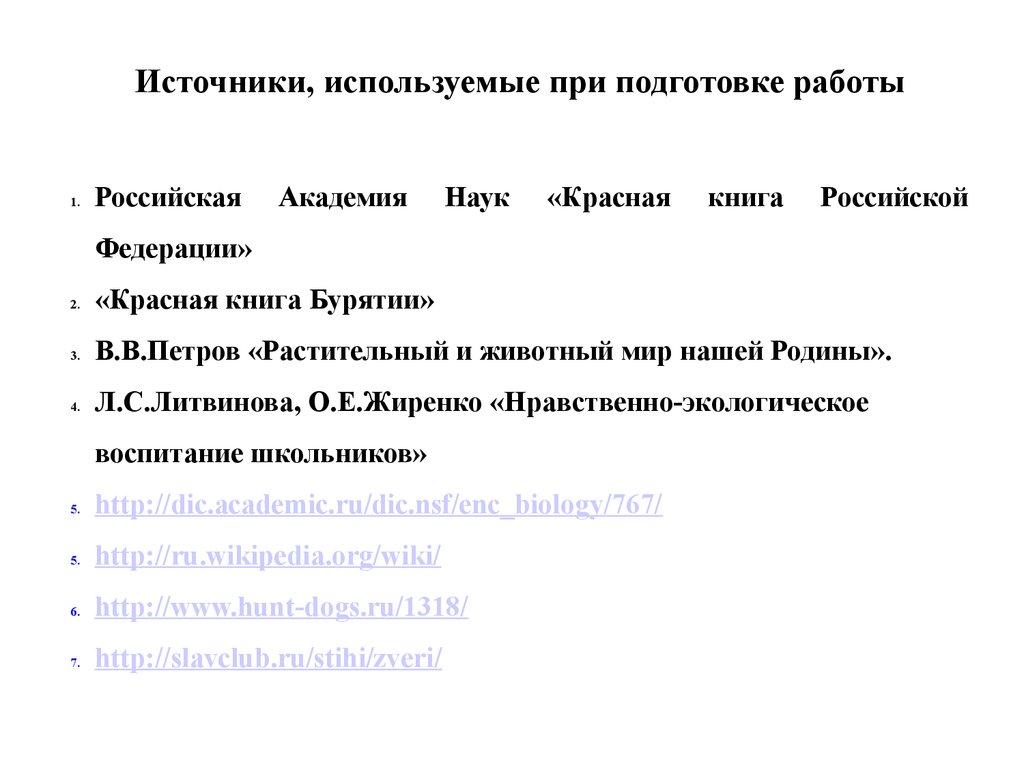 Источники, используемые при подготовке работы1.