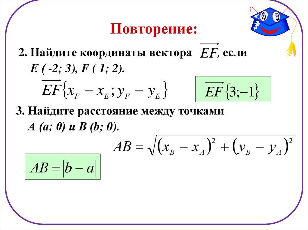 Повторение:2. Найдите координаты вектора