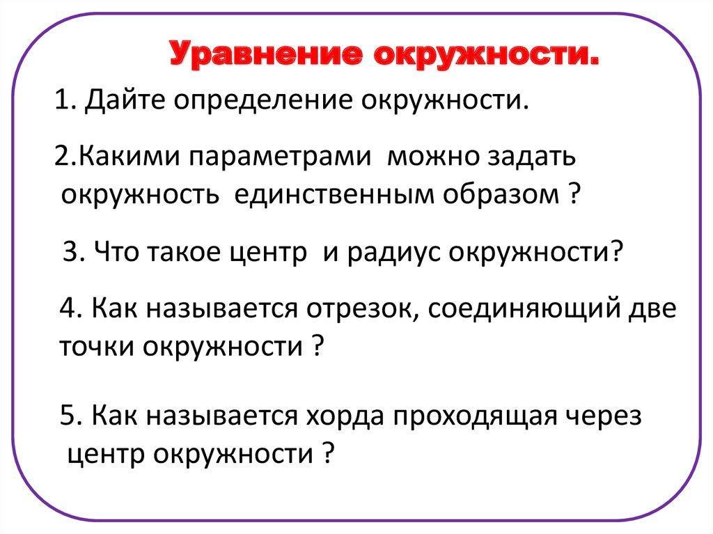 Уравнение окружности.1. Дайте определение окружности.