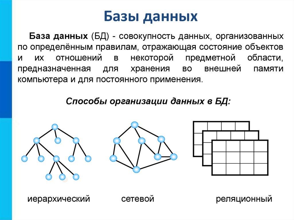 Способы организации данных в БД: