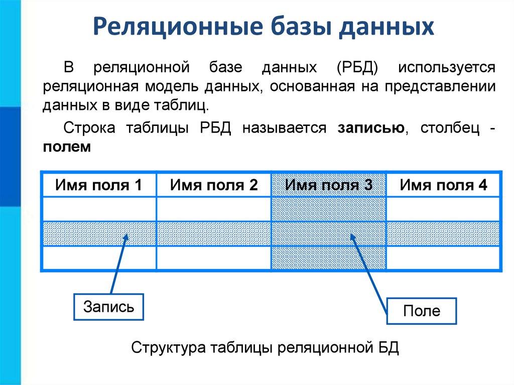 Записи и поля РБДЗапись содержит всю информацию об