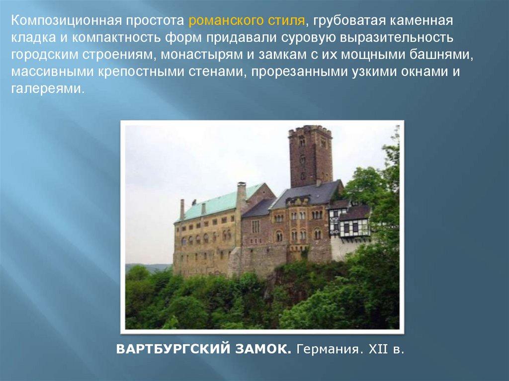 Композиционная простота романского стиля, грубоватая каменнаякладка и компактность форм придавали суровую выразительность