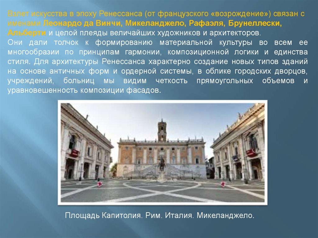 стиля. Для архитектуры Ренессанса характерно создание новых типов зданий