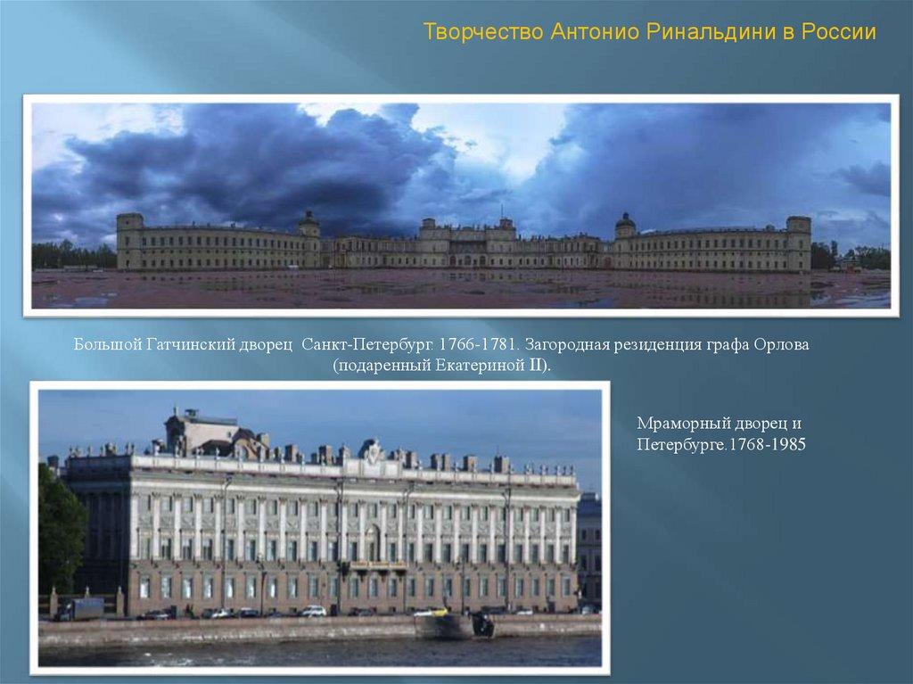 Творчество Антонио Ринальдини в РоссииБольшой Гатчинский дворец Санкт-Петербург. 1766-1781. Загородная резиденция графа Орлова