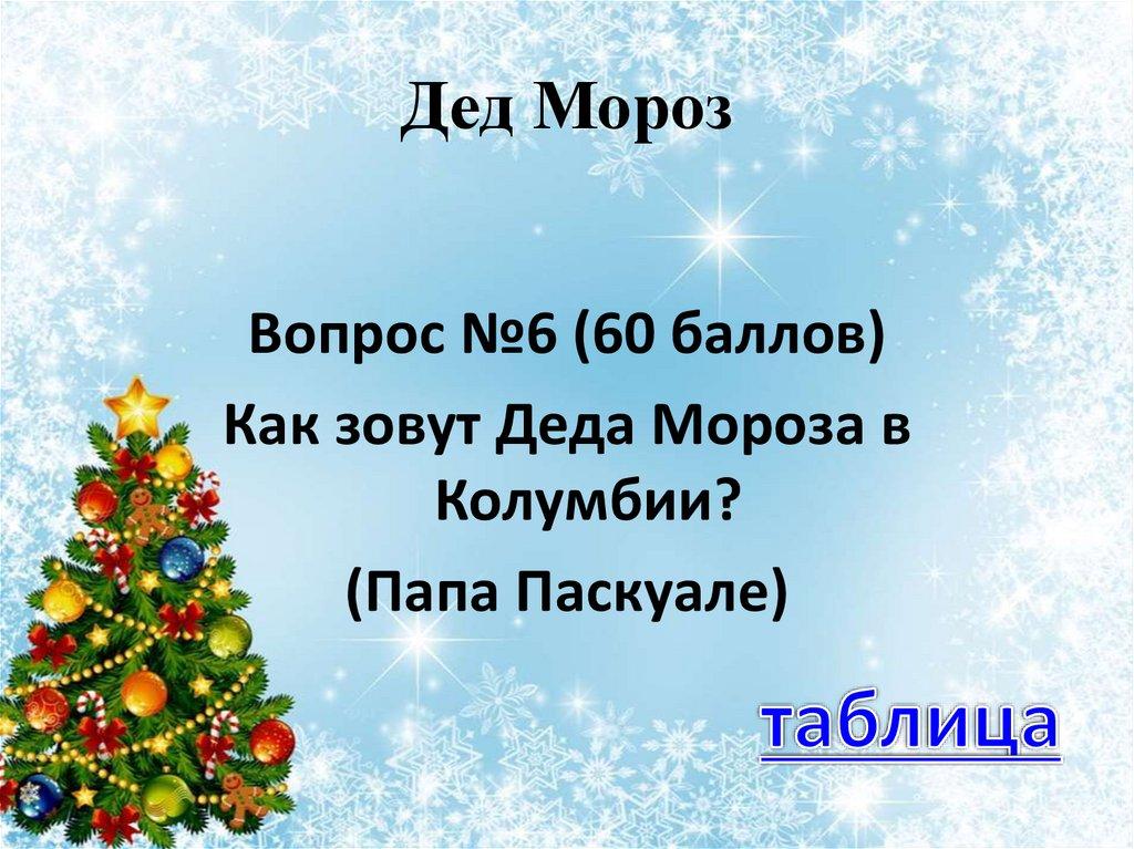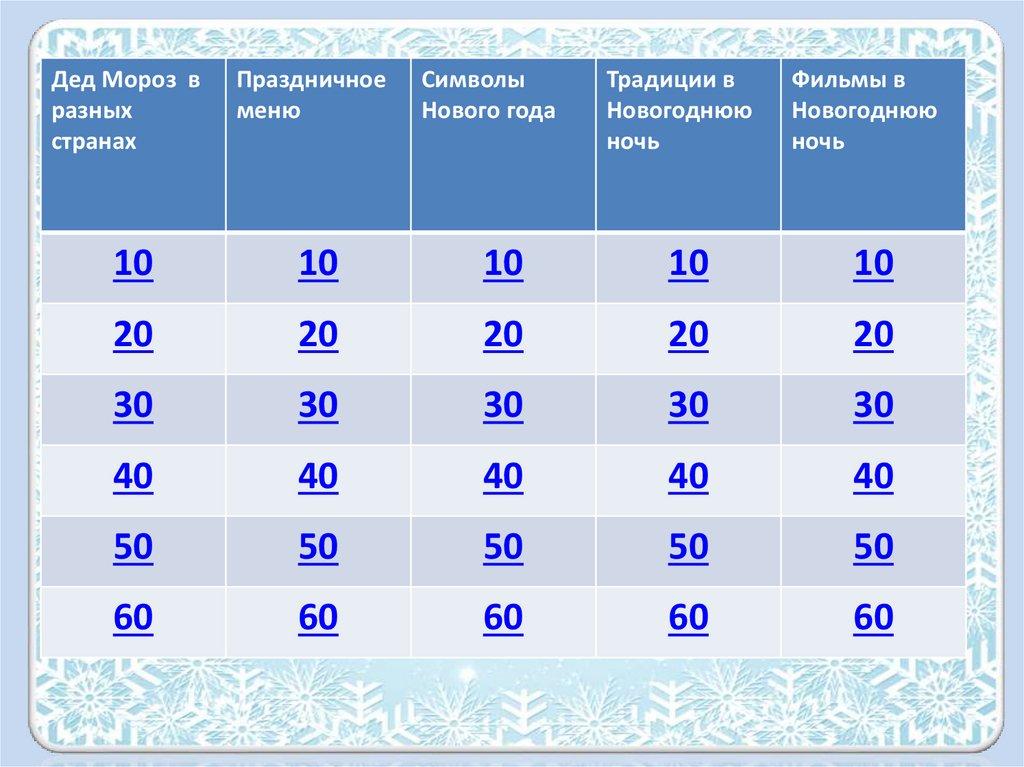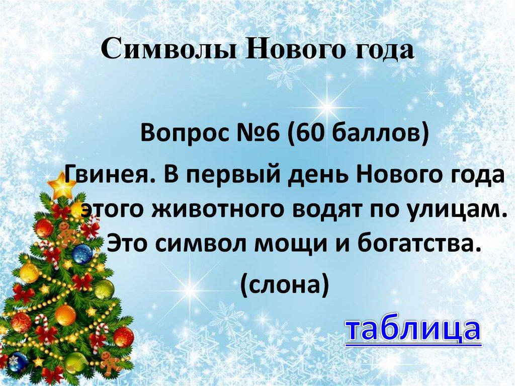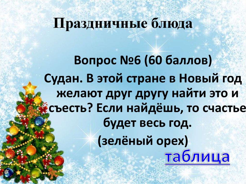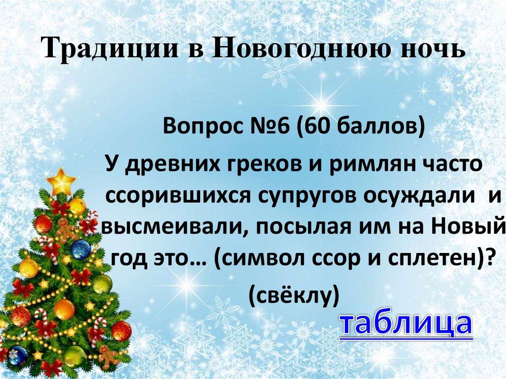Традиции в Новогоднюю ночьВопрос №6 (60 баллов)