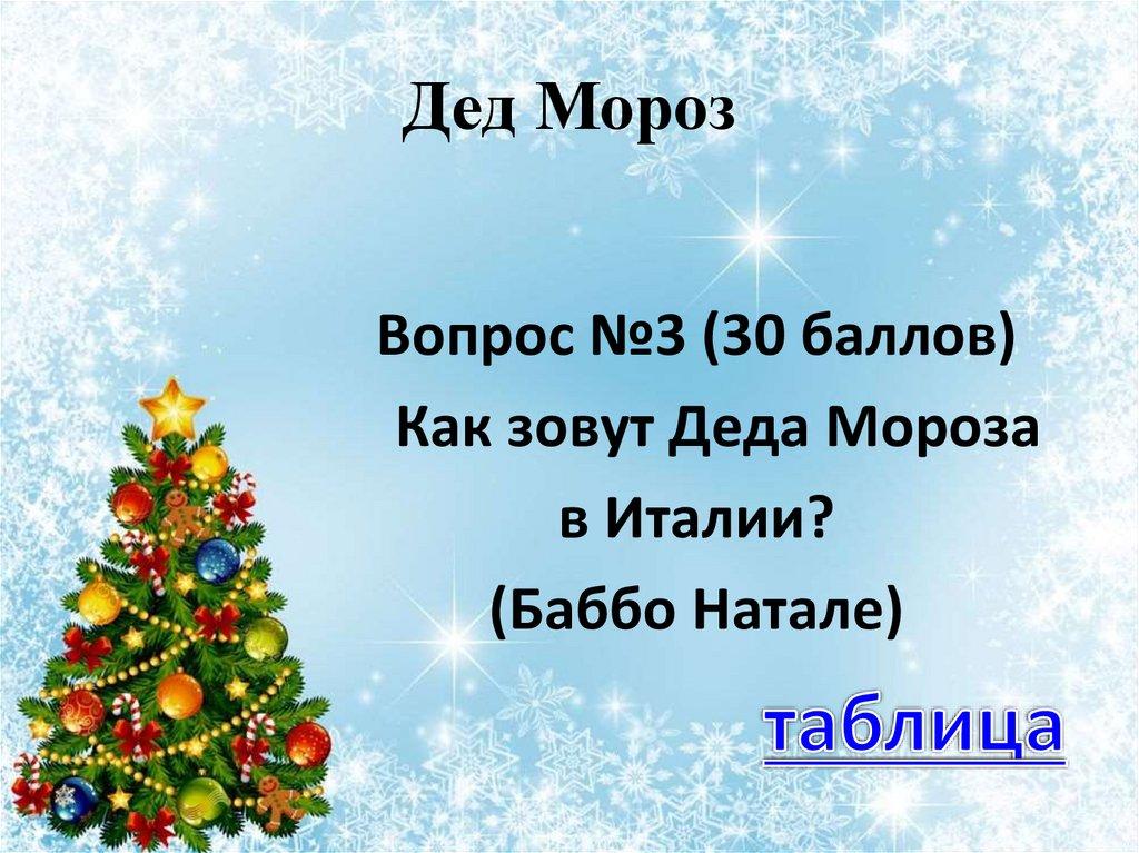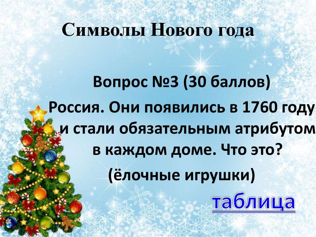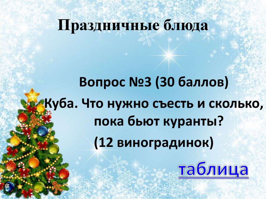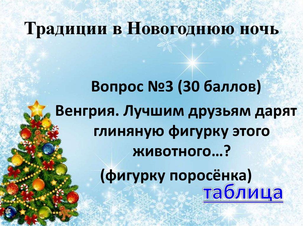 Традиции в Новогоднюю ночьВопрос №3 (30 баллов)