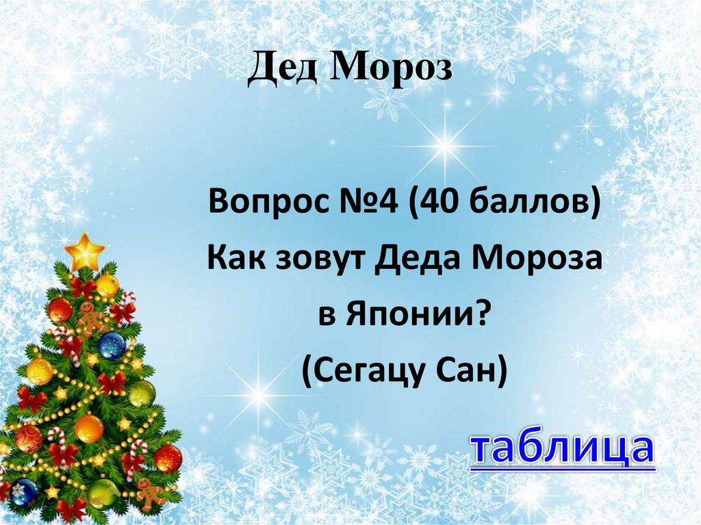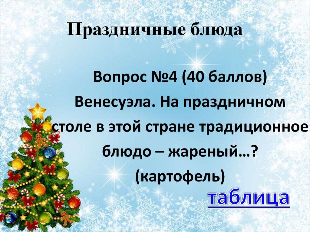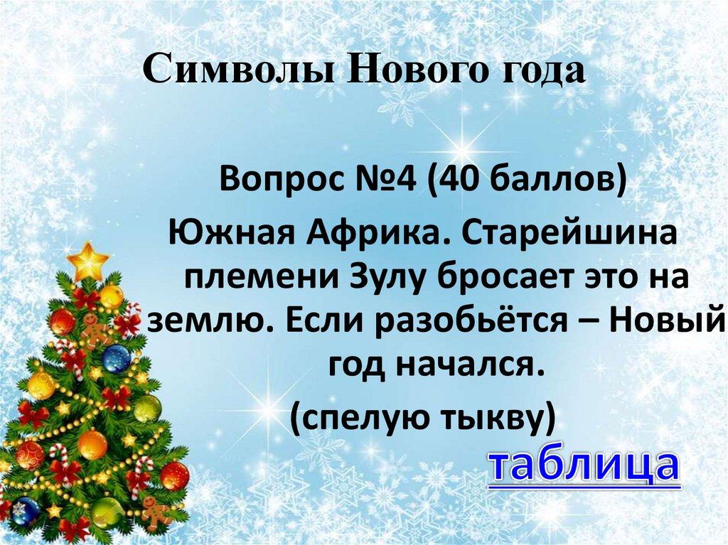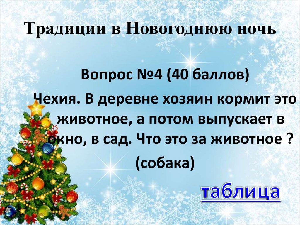 Традиции в Новогоднюю ночьВопрос №4 (40 баллов)