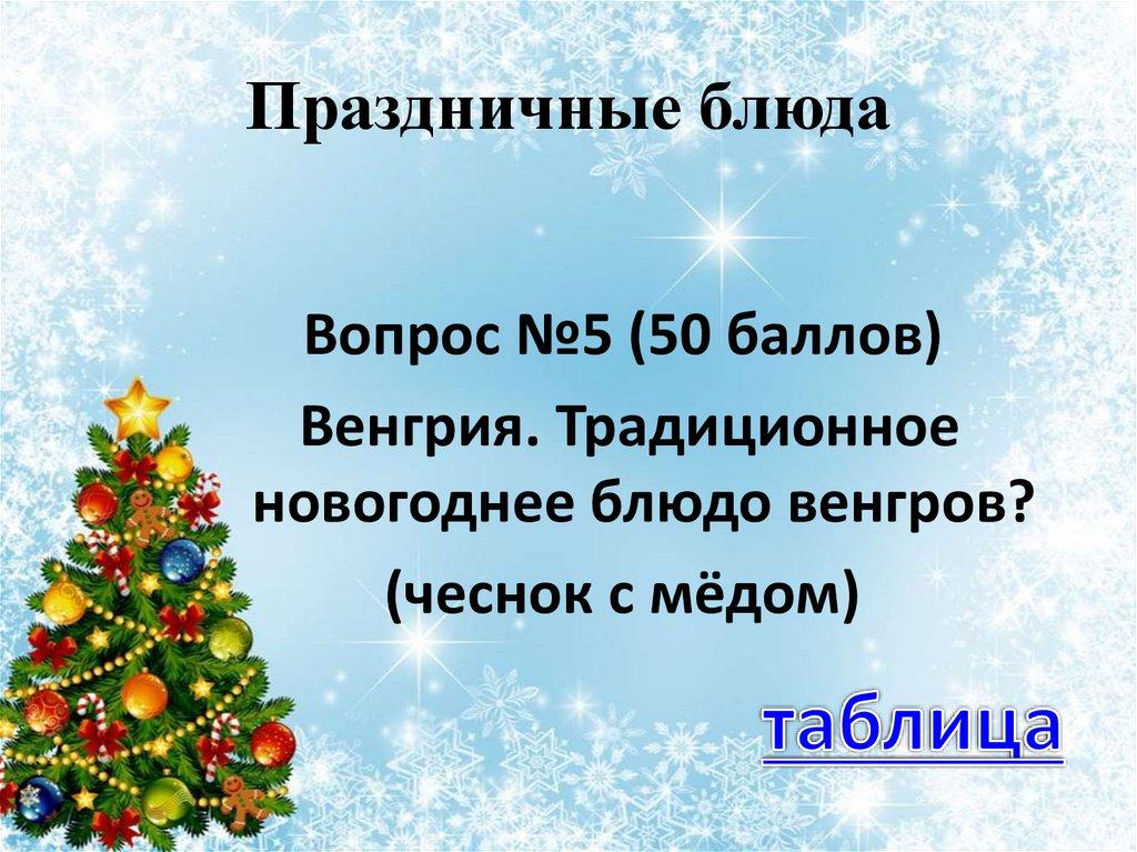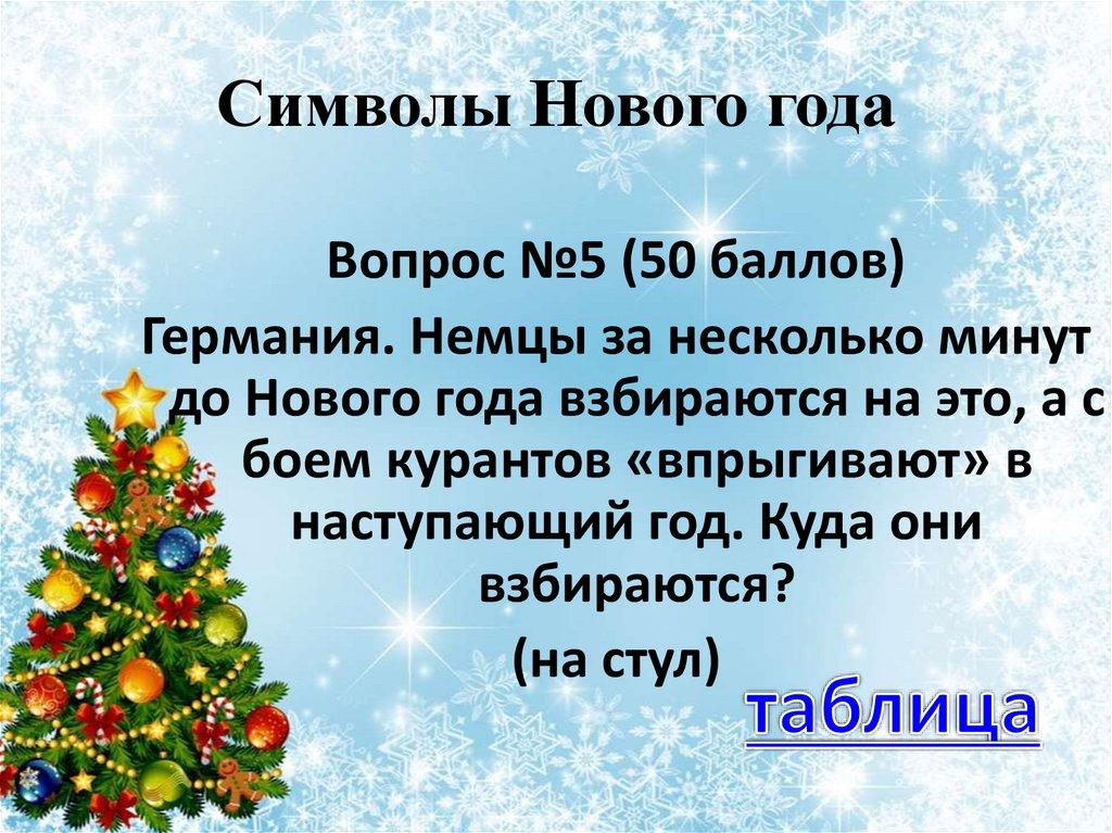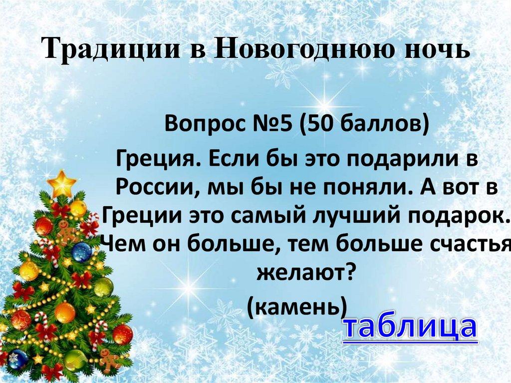 Традиции в Новогоднюю ночьВопрос №5 (50 баллов)