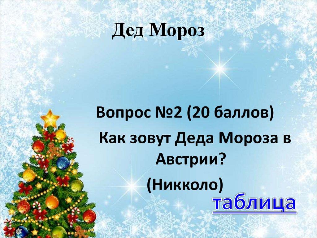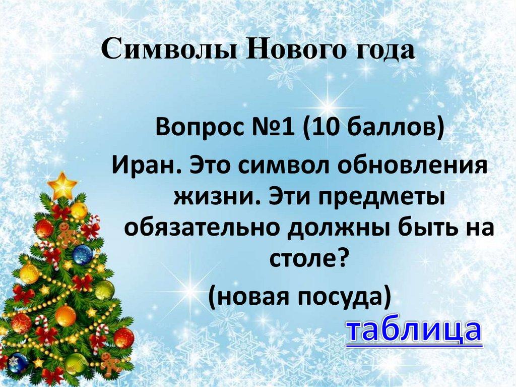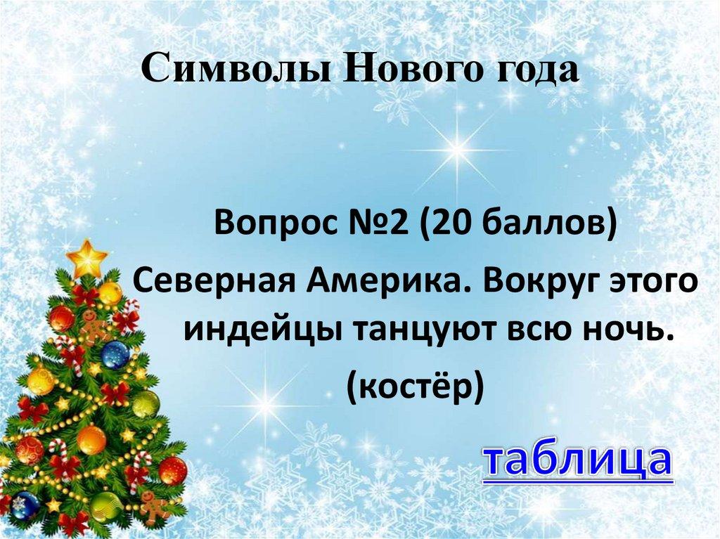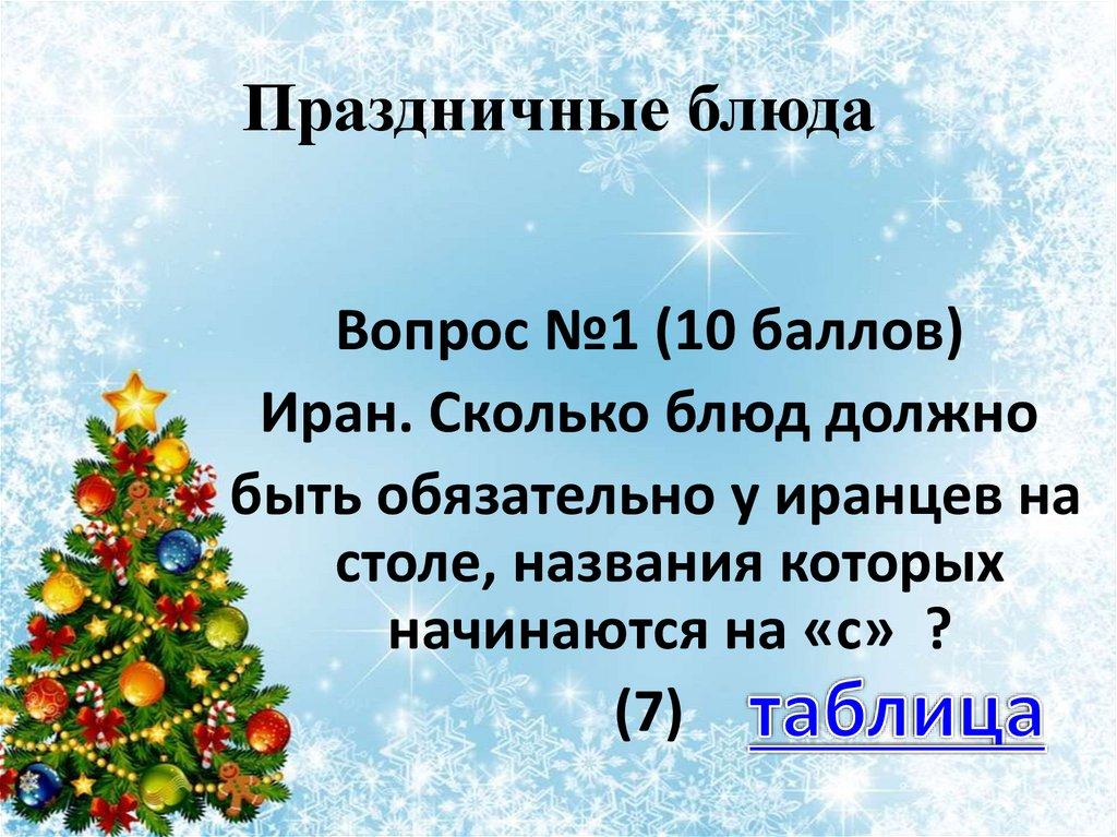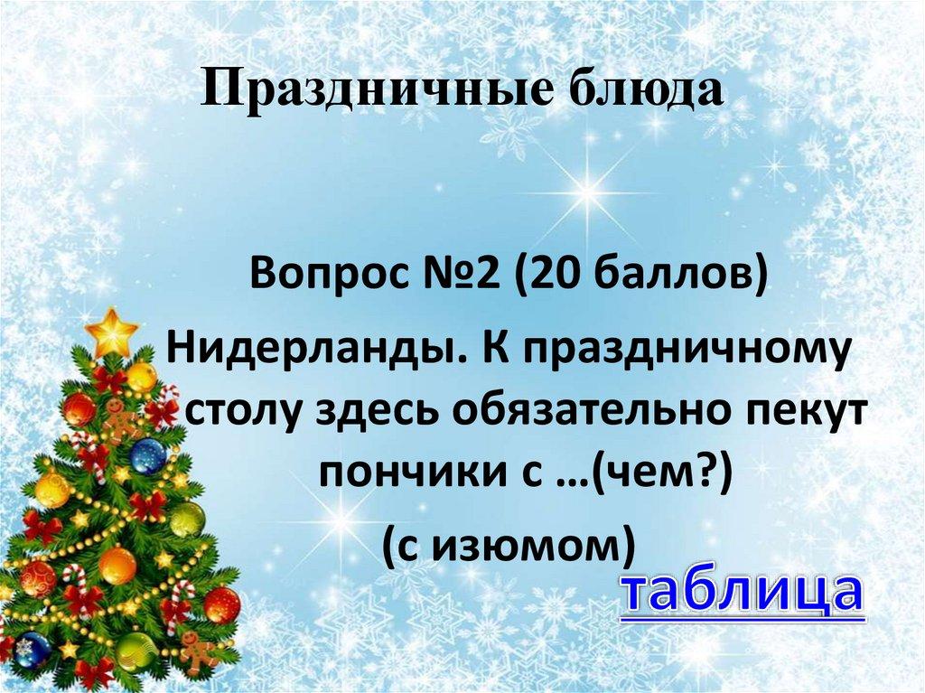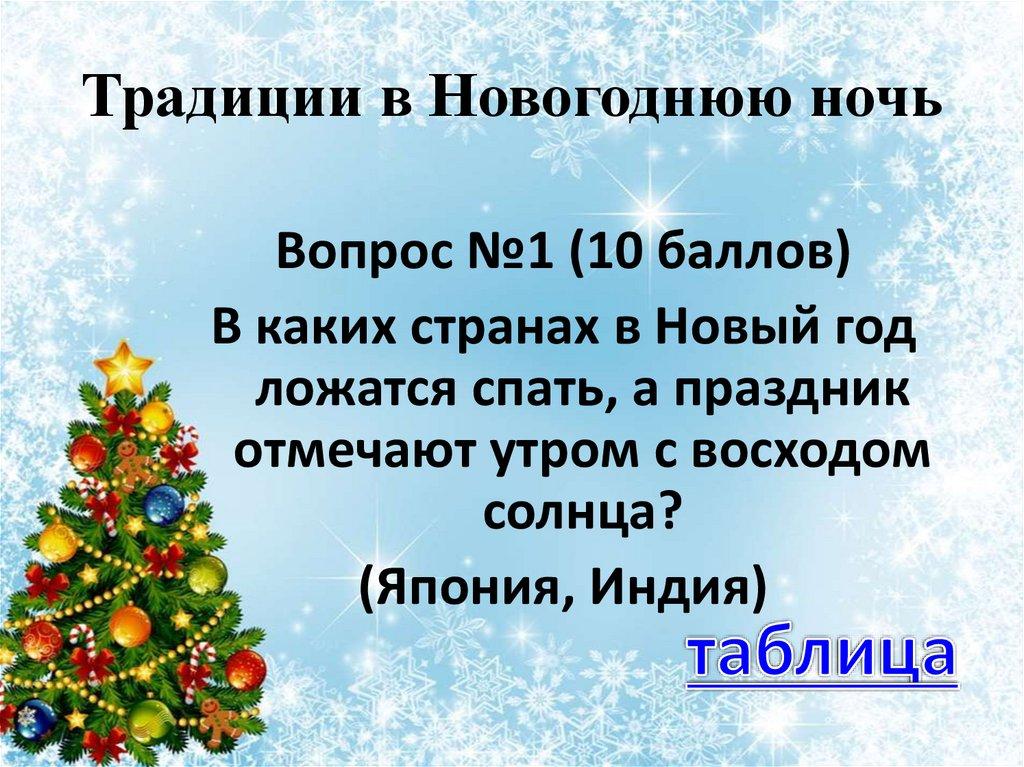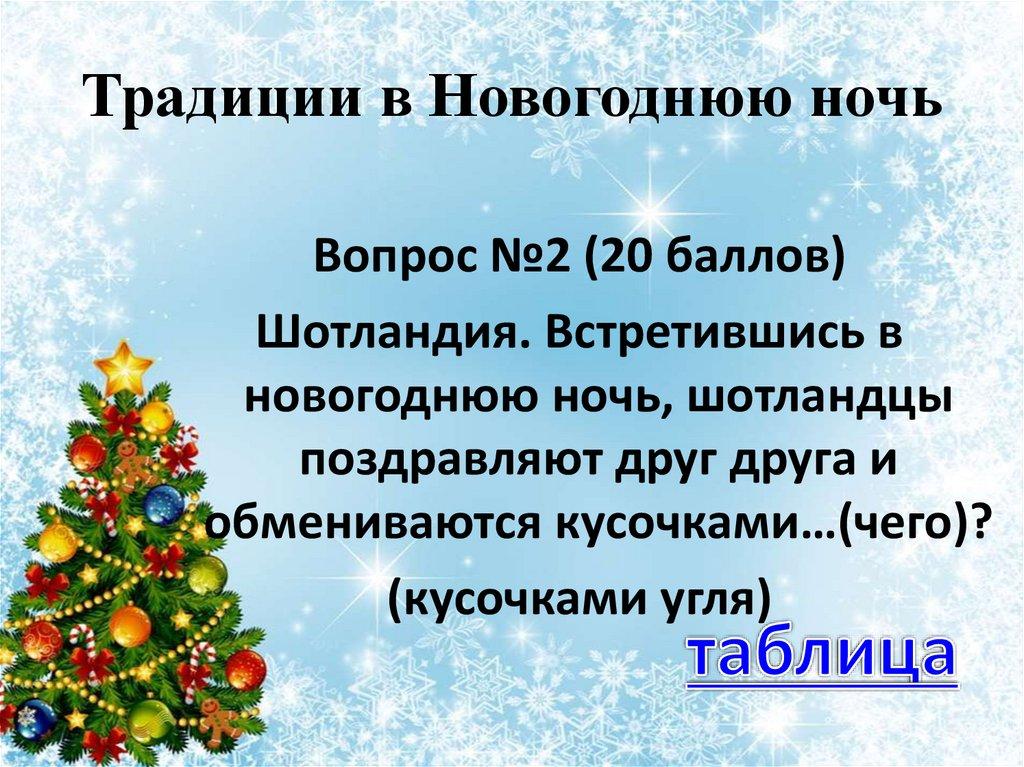 Традиции в Новогоднюю ночьВопрос №2 (20 баллов)