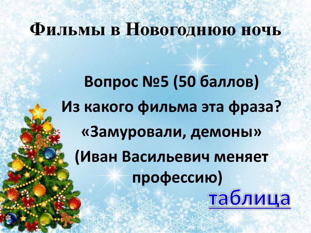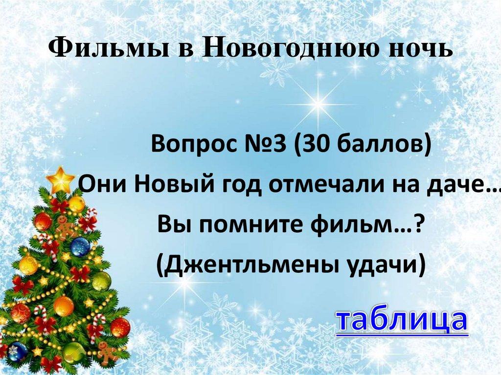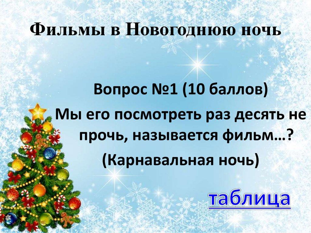 Фильмы в Новогоднюю ночьВопрос №1 (10 баллов)