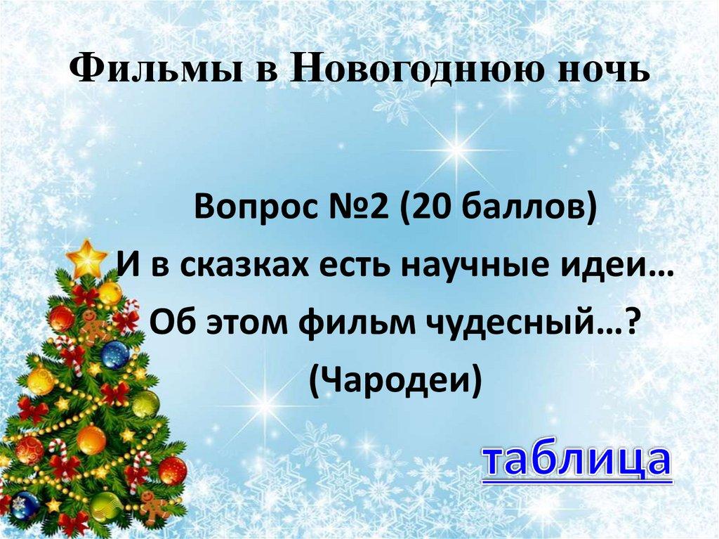 Фильмы в Новогоднюю ночьВопрос №2 (20 баллов)