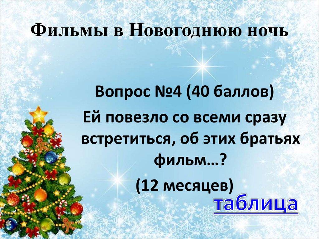 Фильмы в Новогоднюю ночьВопрос №4 (40 баллов)