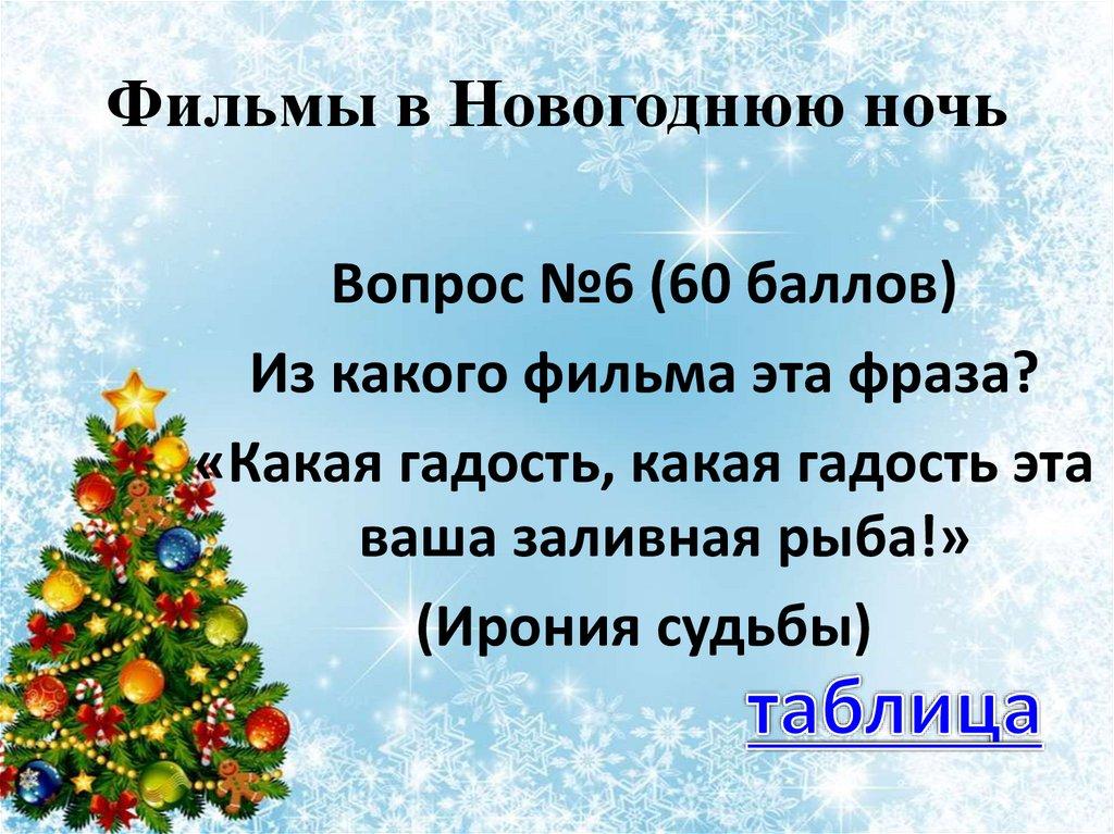 Фильмы в Новогоднюю ночьВопрос №6 (60 баллов)