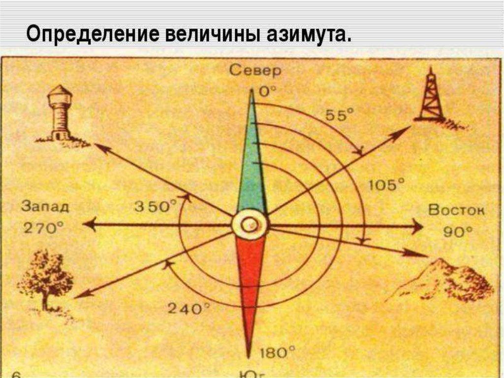 север и направлением на объект,