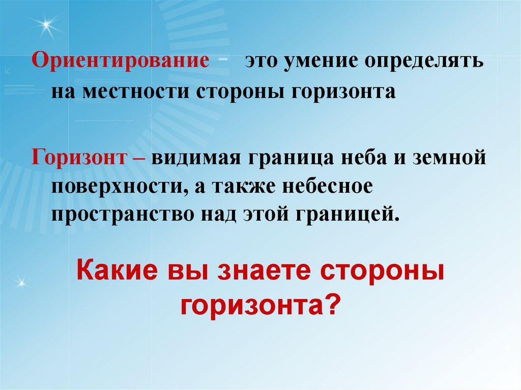 1 Ориентироваться – это значит … ?2 Назовите основные стороны горизонта?