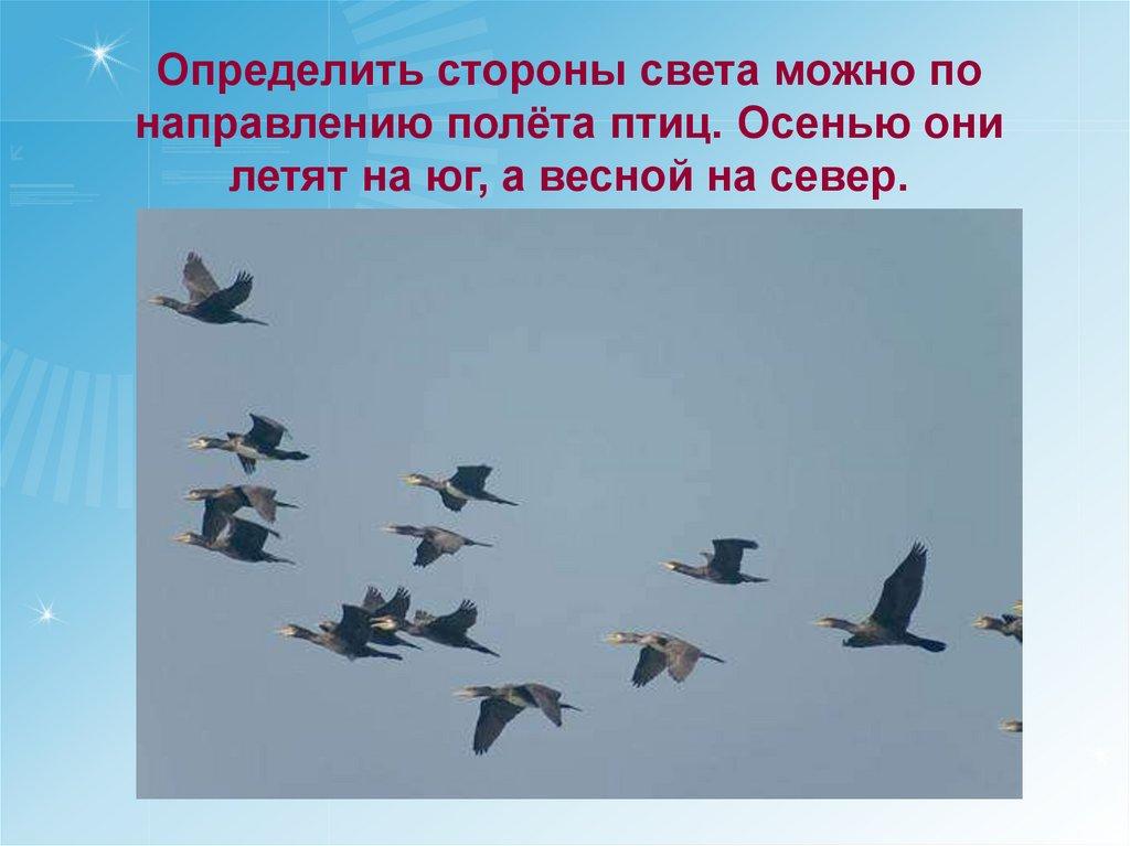 Определить стороны света можно понаправлению полёта птиц. Осенью они