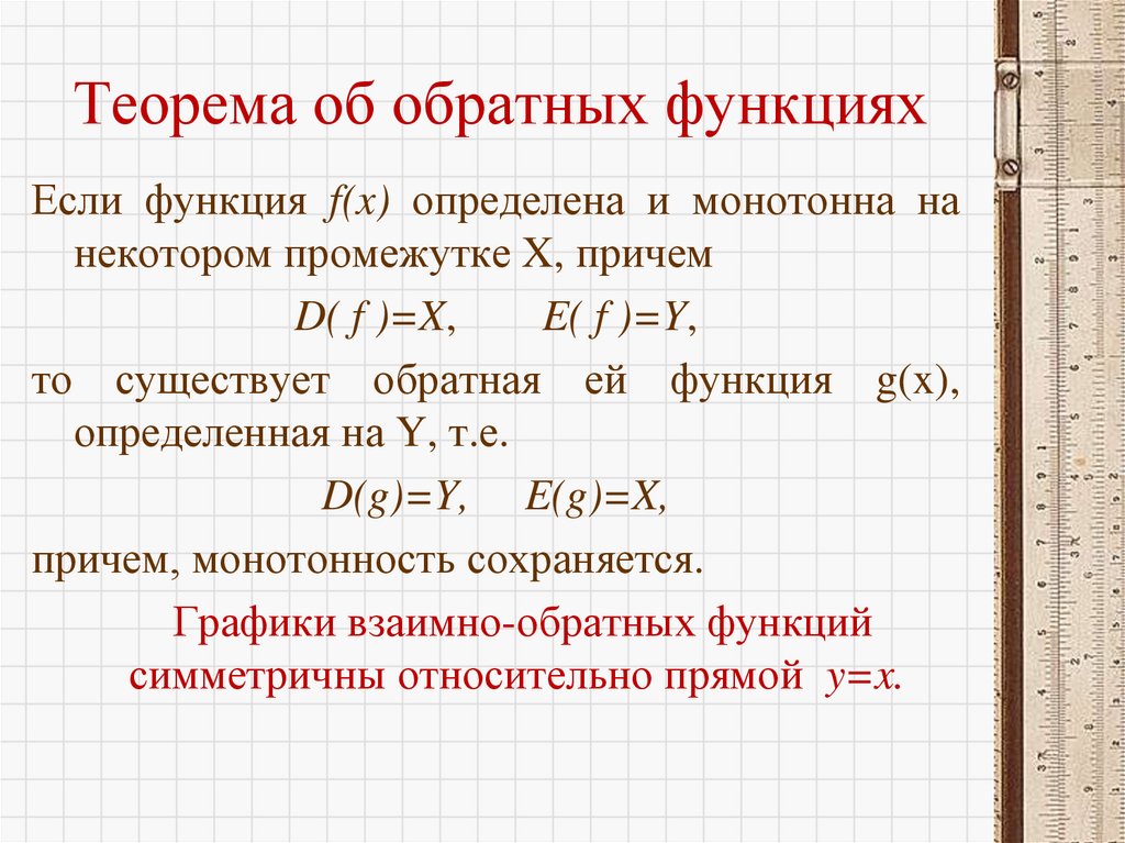 Теорема об обратных функцияхЕсли функция f(x) определена и монотонна на