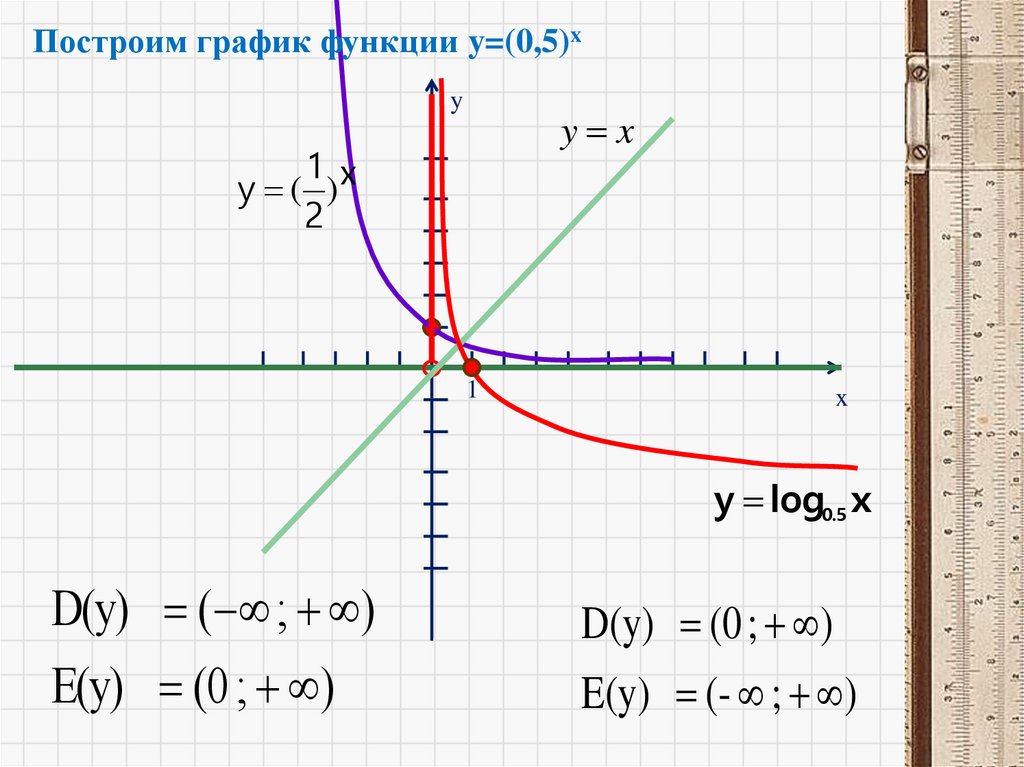 с осью Оу график функции не пересекается; с осью Ох: А (1;0).