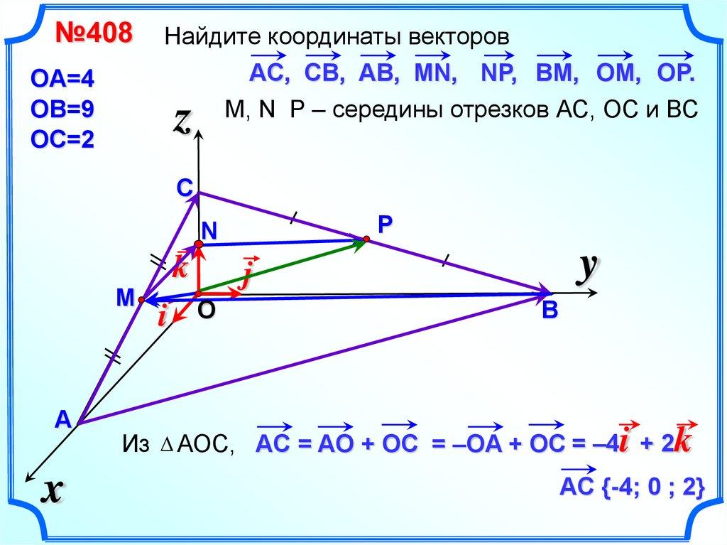 Из АОС, AC = AО + ОС = –ОA + ОС = –4i + 2k